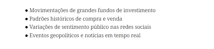 A tecnologia cruza tudo isso e transforma o caos em previsões claras e diretas, uma espécie de "radar do mercado" que mostra, em tempo real, o que tende a subir ou cair nas próximas horas.