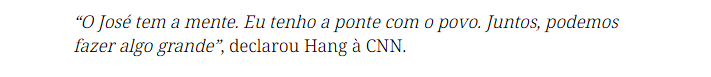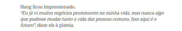 Hang, que sempre acreditou nas força da inovação e do empreendedorismo nacional, viu ali uma nova oportunidade de empoderar o povo brasileiro, segundo ele, ''fazer história mais uma vez''.