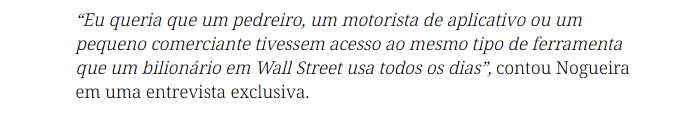 De origem humilde, Nogueira sempre acreditou que a tecnologia poderia nivelar o campo de jogo entre quem nasce com oportunidades e quem precisa criá-las.
