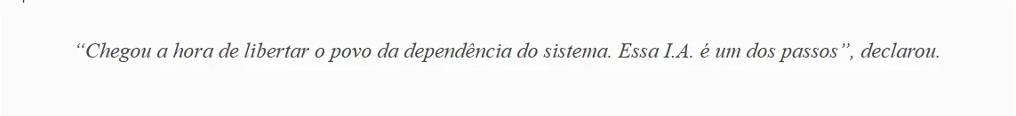 ´´Se a gente der ao povo as ferramentas certas, ele não vai mais precisar depender de promessas.A Axion I.A é uma dessas ferramentas. Ela ensina, empodera e transforma."